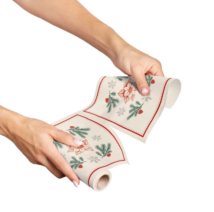Rollo de 6 servilletas de tela de 30×30 cm y algodón reciclado de la colección Botanic. Decora tu mesa en estas fechas especiales añadiendo el detalle que marca la diferencia con estas servilletas de alta calidad.